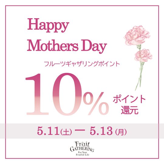 【フルーツギャザリング 全店】Happy Mothers Day💐フルーツギャザリングポイント10%還元!!