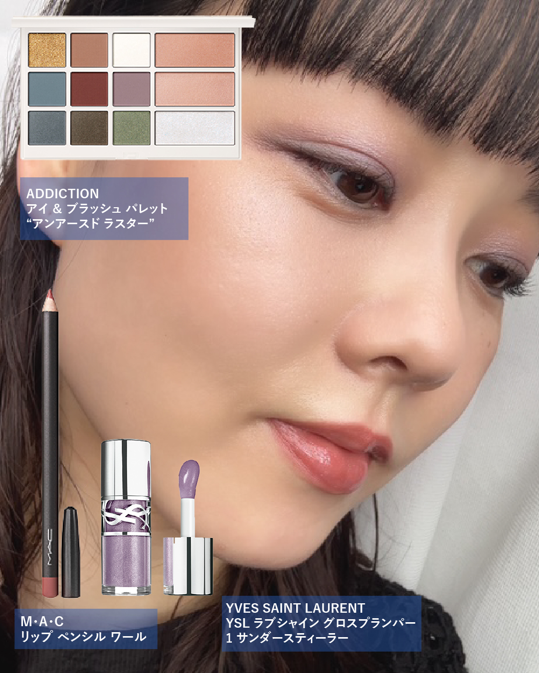 深みのあるモーヴカラーを重ねてエレガントさをプラスします。