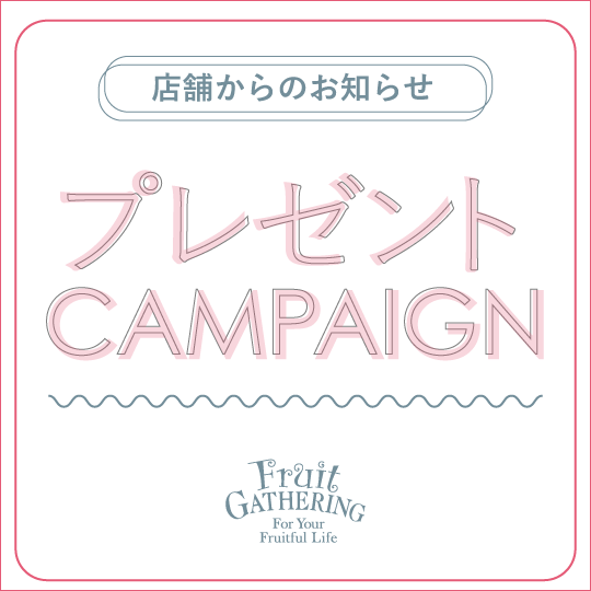 2026年3月22日(日)~3月25日(水)の期間中、フルーツギャザリング アプリ会員様で8,800円(税込)以上ご購入いただくと、 「オリジナルクレンジングウォーター」をプレゼント!