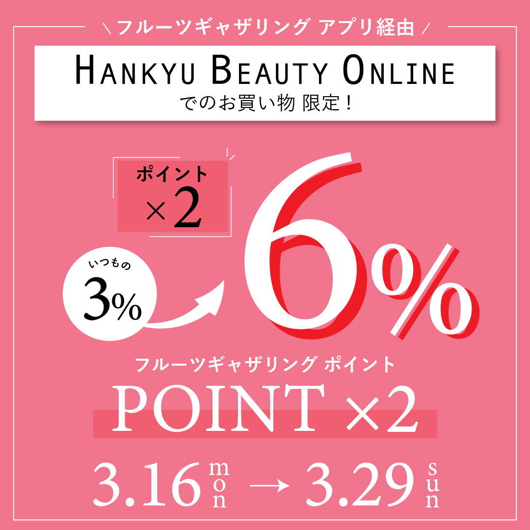 ※HANKYU BEAUTY ONLINEでのご購入は対象外です。会員ランクに関わらず購入金額(税抜)×3%のフルーツギャザリング ポイントが加算されます。